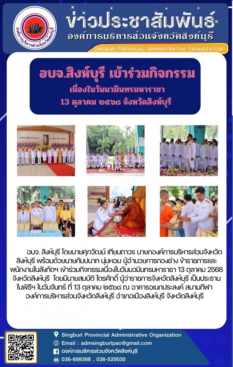 อบจ.สิงห์บุรี เข้าร่วมกิจกรรมเนื่องในวันนวมินทรมหาราชา [13 ตุลาคม 2568]