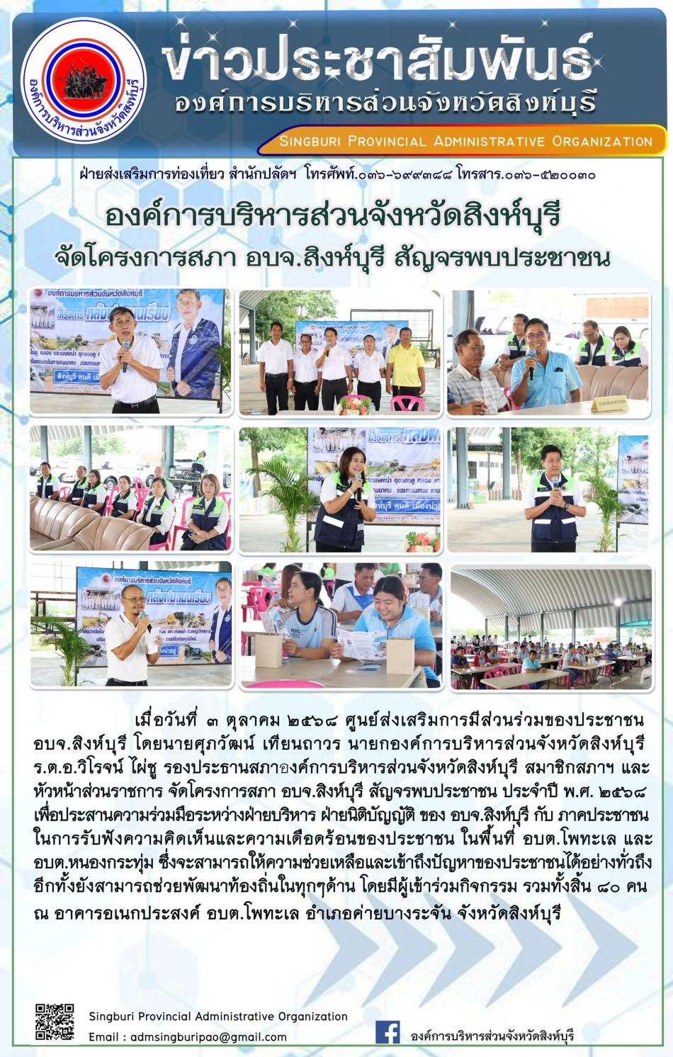 องค์การบริหารส่วนจังหวัดสิงห์บุรี จัดโครงการสภา อบจ. สิงห์บุรี สัญจรพบประชาชน [3 ตุลาคม 2568]