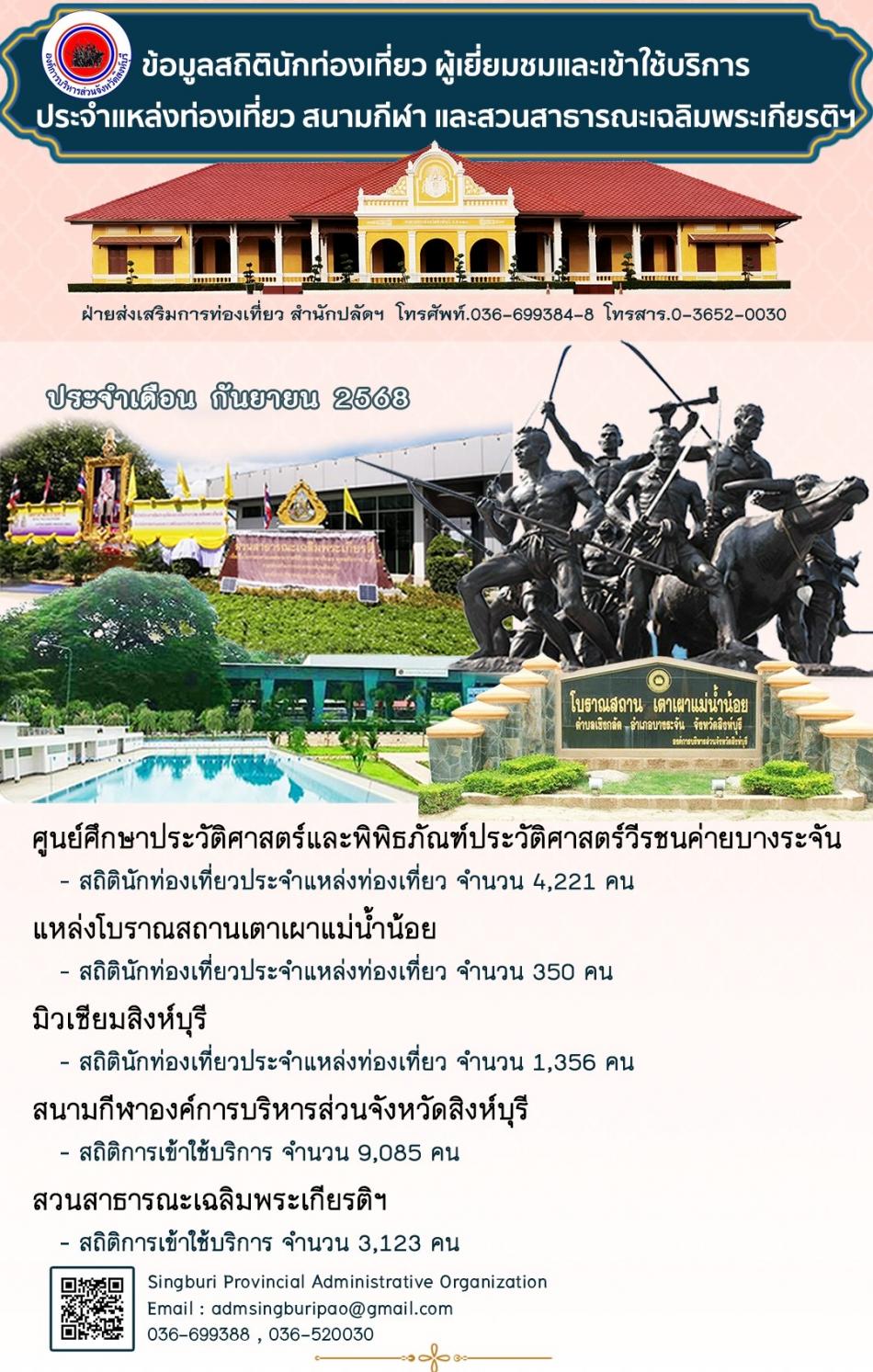 ข้อมูลสถิตินักท่องเที่ยว ผู้มาเยี่ยมชมและเข้าใช้บริการ ประจำแหล่งท่องเที่ยว สนามกีฬา และสวนสาธารณะเฉลิมพระเกียรติฯ [3 ตุลาคม 2568]