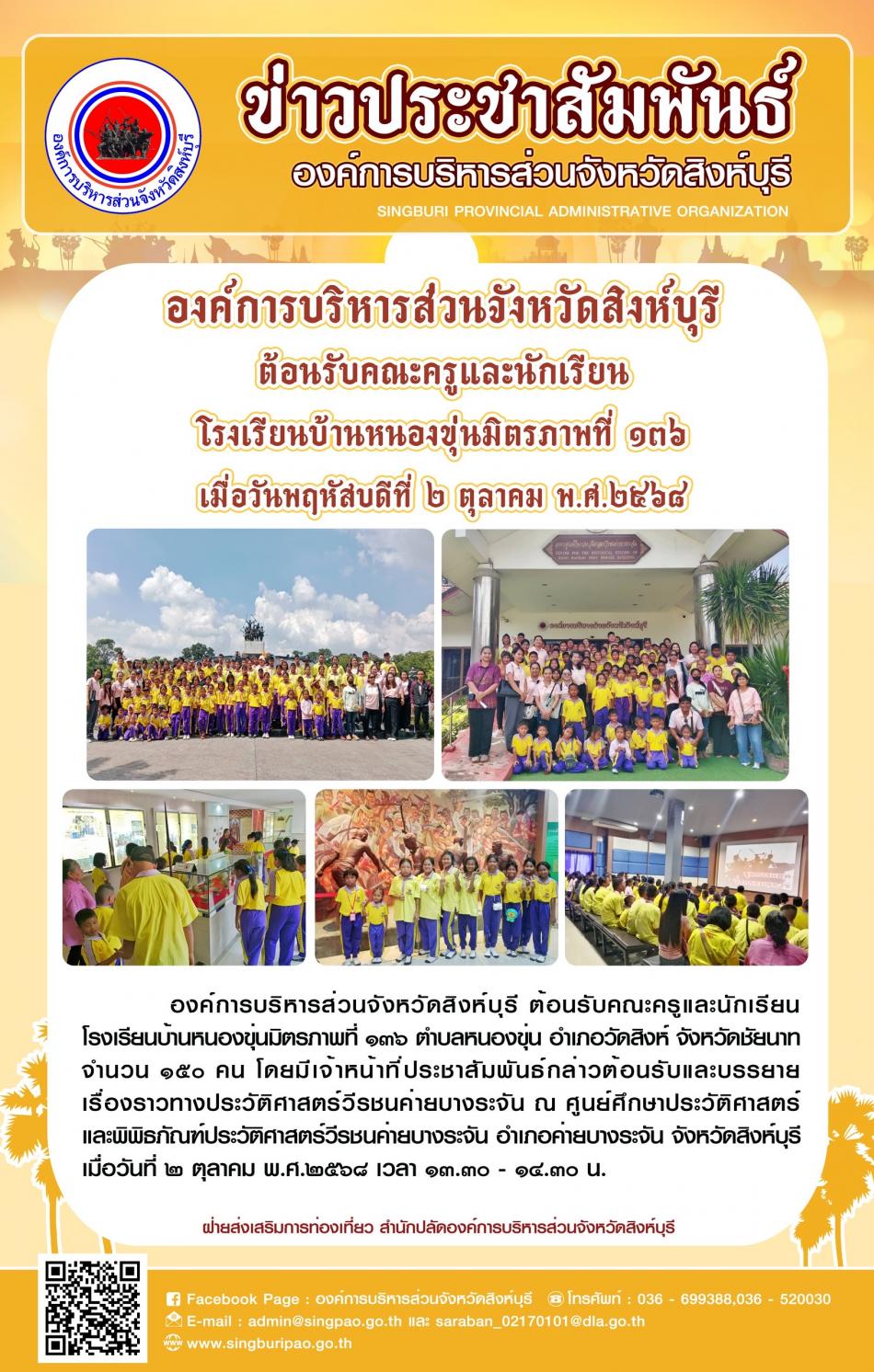 องค์การบริหารส่วนจังหวัดสิงห์บุรี ต้อนรับคณะครูและนักเรียนโรงเรียนบ้านหนองขุ่นมิตรภาพที่ 136 [2 ตุลาคม 2568]