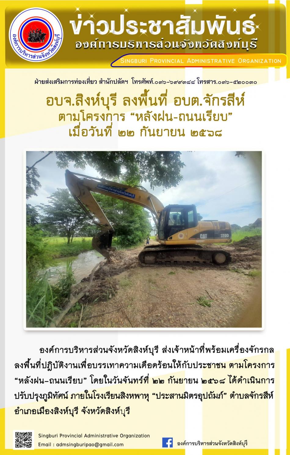 อบจ.สิงห์บุรี ลงพื้นที่ อบต.จักรสีห์ ตามโครงการ “ หลัง ฝน- ถนนเรียบ” [22 กันยายน 2568]