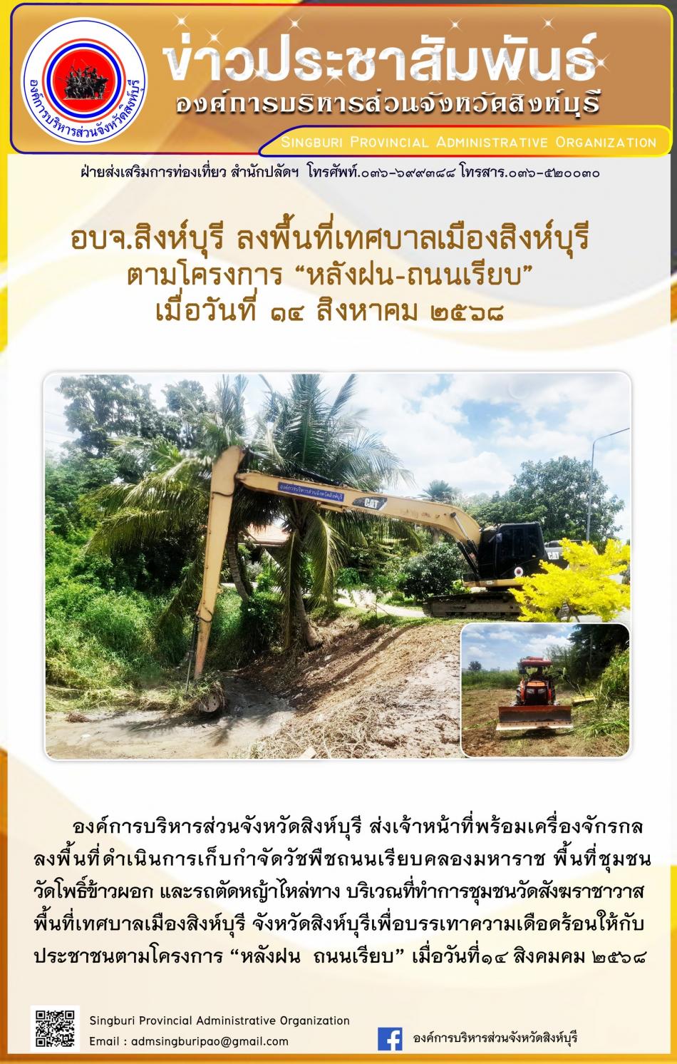 อบจ. สิงห์บุรี ลงพื้นที่ เทศบาลเมืองสิงห์ ตามโครงการ “ หลังฝน-ถนนเรียบ” [14 สิงหาคม 2568]