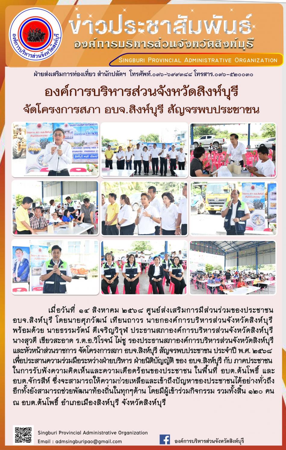 องค์การบริหารส่วนจังหวัดสิงห์บุรี จัดโครงการสภาอบจ. สิงห์บุรี สัญจรพบประชาชน [14 สิงหาคม 2568]