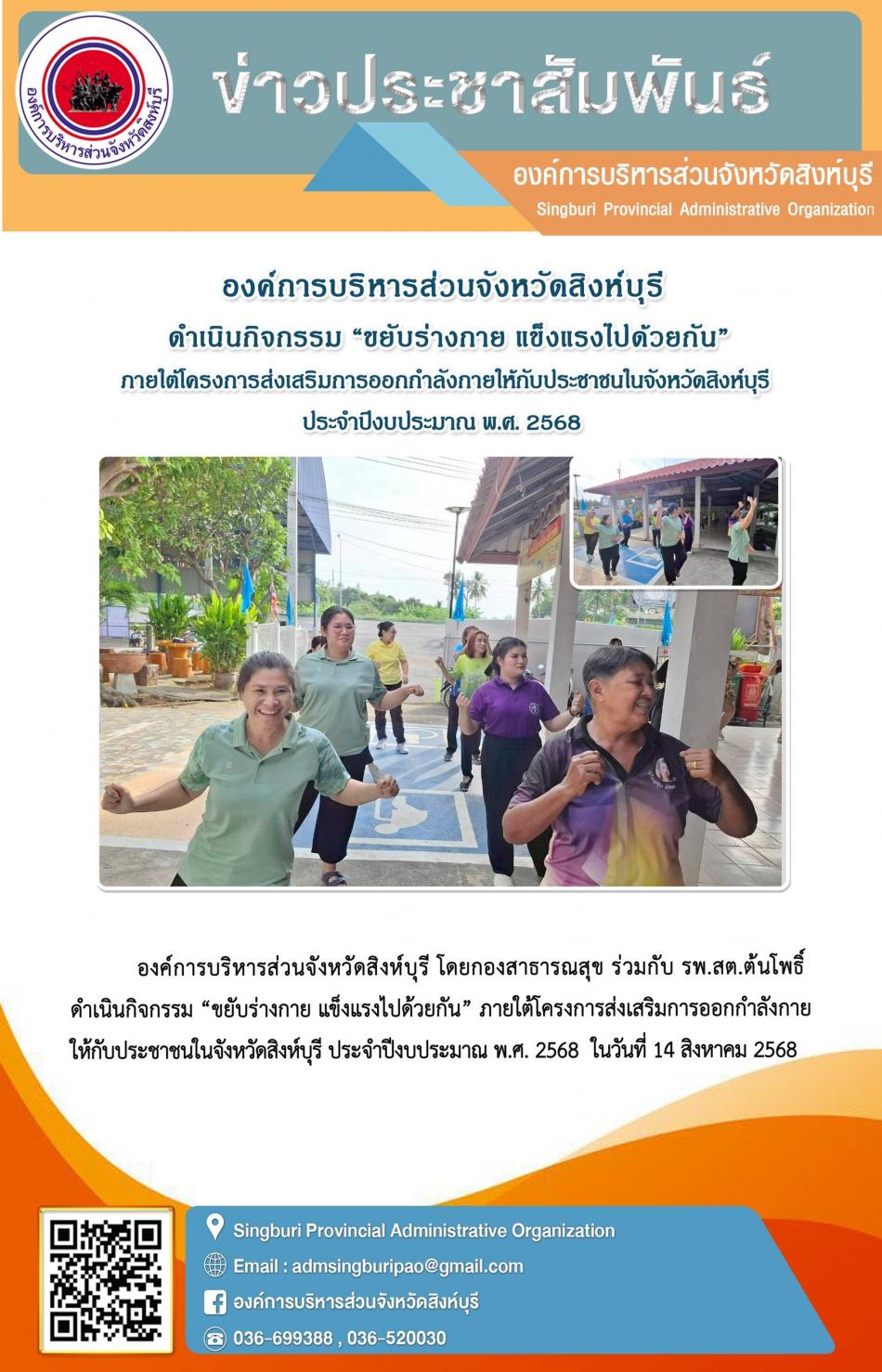 องค์การบริหารส่วน ดำดำเนิน ขยับ แข็งแรง ภายใต้โครงการส่งเสริมการออกกำลังกายให้ภายใต้โครงการส่งเสริมการออกกำลังกายให้กับประชาชนในจังหวัดสิงห์บุรี ประจำประจำปีงบประมาณพ.ศ. 2568 [14 สิงหาคม 2568]