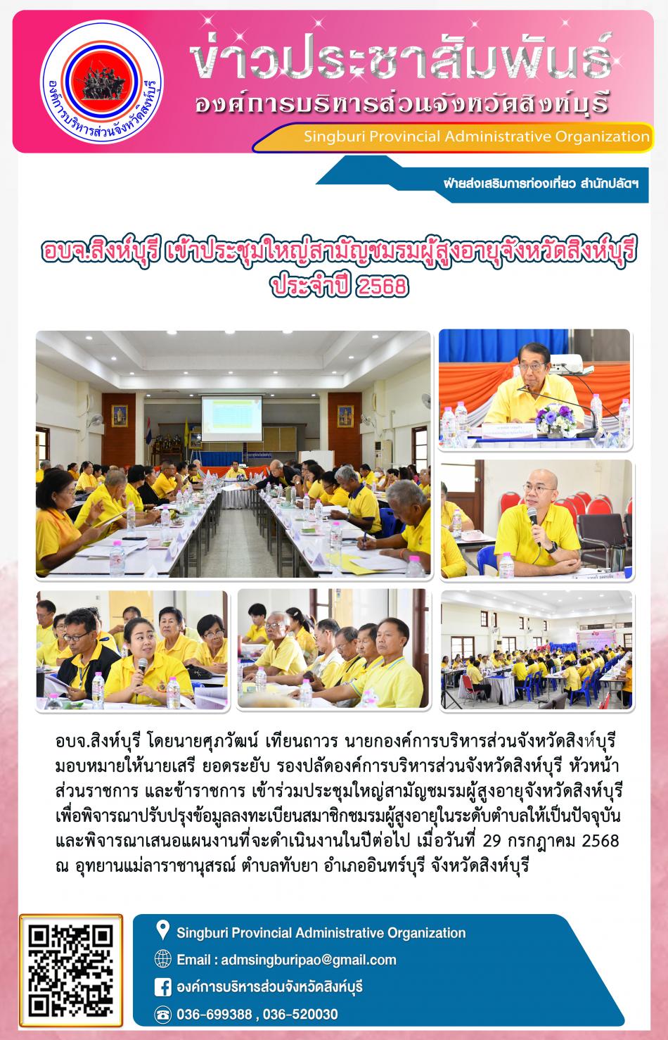 อบจ.สิงห์บุรี เข้าประชุมใหญ่สามัญชมรมผู้สูงอายุจังหวัดสิงห์บุรี ประจำปี 2568 [29 กรกฎาคม 2568]